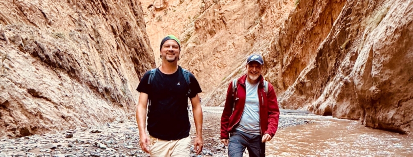 Wciąż czuję tę ciepłą, serdeczną i radosną atmosferę, jaką stworzyliśmy w grupie piętnastu mężczyzn. Trasa wiodła nas terenami zamieszkanymi przez Berberów, żyjących w podobny sposób od setek lat, zajmującymi się uprawą ziemi i wypasem zwierząt. Szliśmy wspaniałym kanionem rzeki, nad którą nocowaliśmy pośród skał o fantastycznych kształtach i kolorach. Droga doprowadziła nas na miejsce, gdzie poprowadziliśmy dwudniowe warsztaty. Nasza praca koncentrowała się na przyjęciu siebie, takim jakim jestem, uznaniu swoich mocy i zasobów, odpuszczeniu nadmiernych oczekiwań wobec siebie, uznaniu własnej wrażliwości i delikatności. W stronę czułości i troski do samego siebie. A dzięki temu ku akceptacji innych osób w ich autentyczności. Nie mam słów, by wyrazić wdzięczność, za atmosferę i głębię, jaką wspólnie stworzyliśmy.